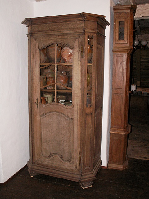 zegar stojący i malowany mały kabinet z datą 1765. Te dwa meble trafią