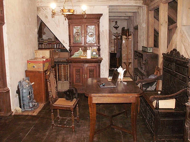 7 maja 2020. Hol na strychu zaczął się zapełniać gratami przenoszonymi z innych miejsc.