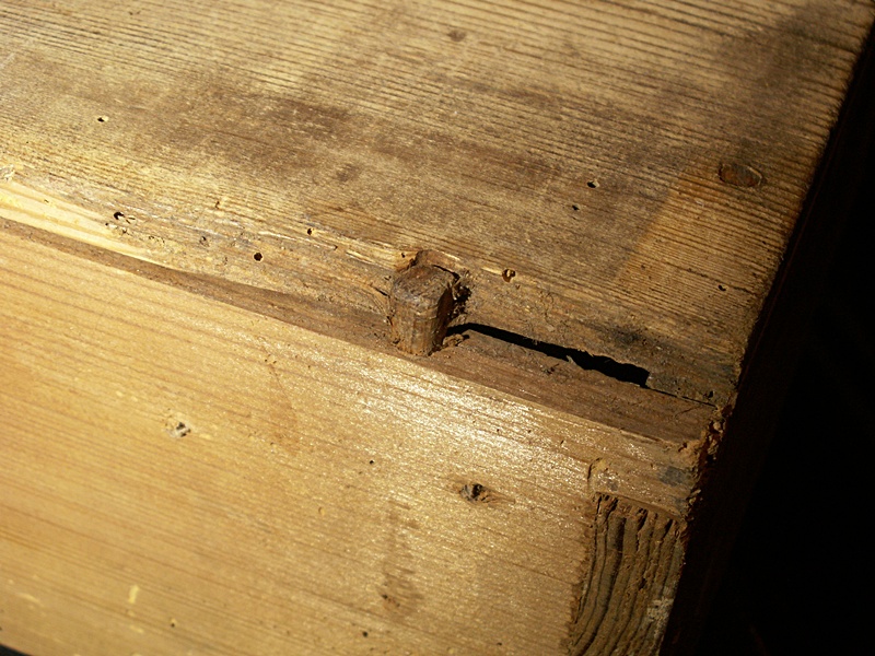 miejscach są pęknięcia drewna wzdłuż słojów i są to pęknięcia świeższe,