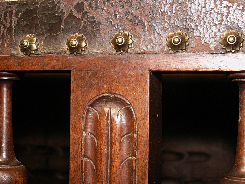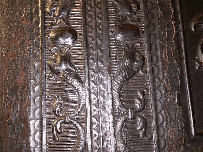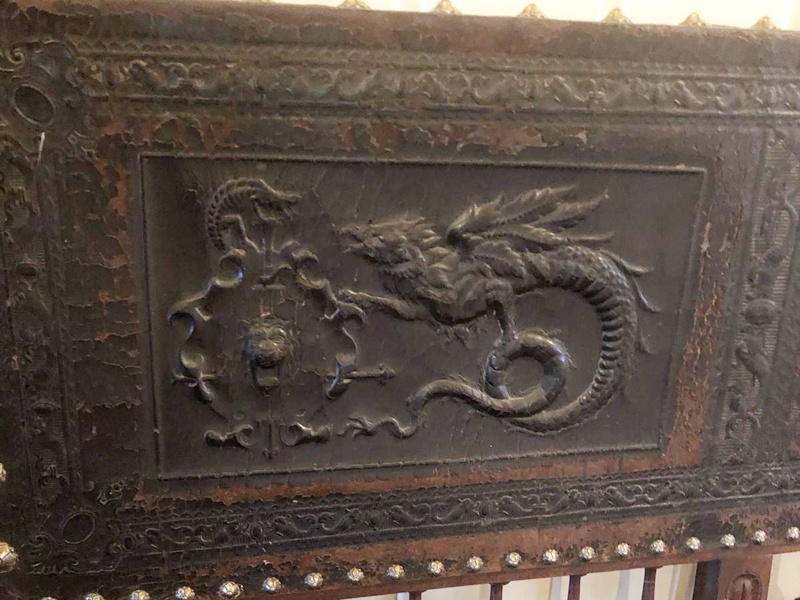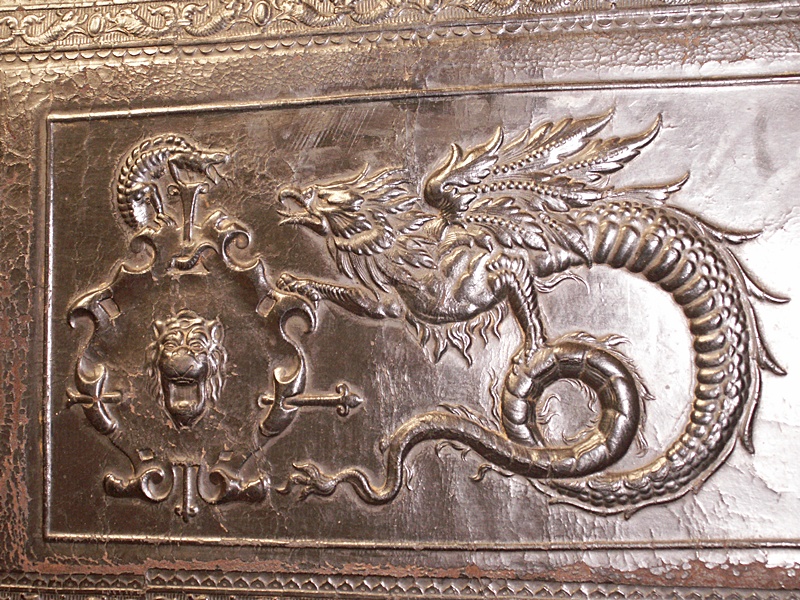 motyw smoka, podobne ćwieki mocujące skórę, podobne tralki, żłobienia