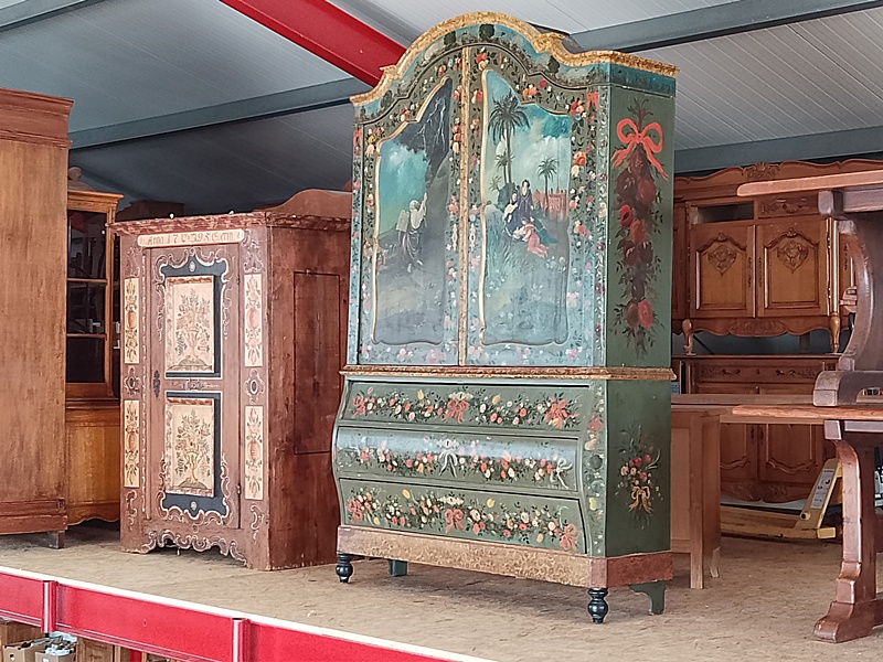 elementach mebla są malunki o różnej tematyce, głównie kwiaty, ale na