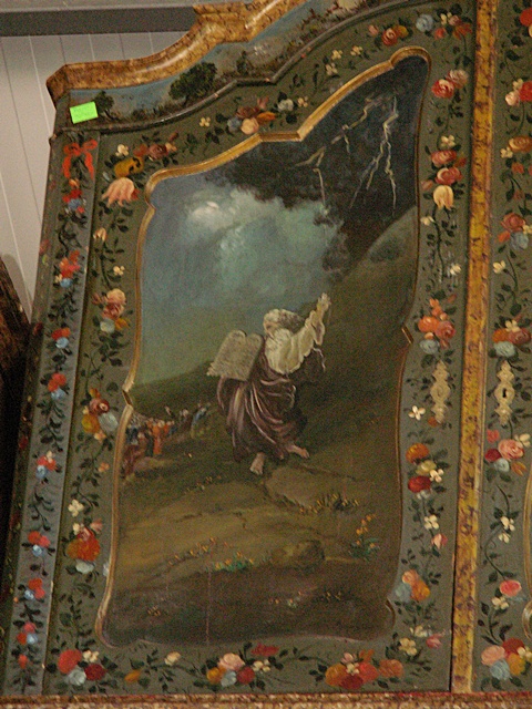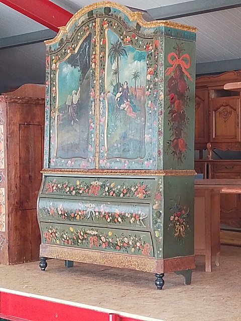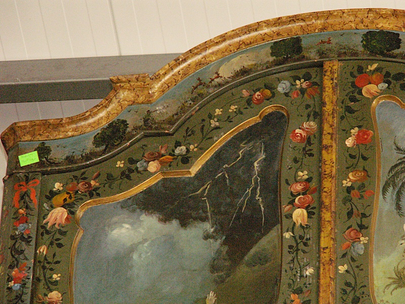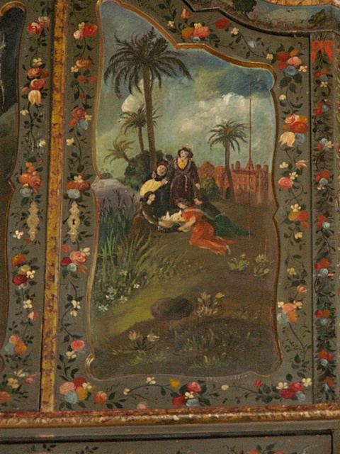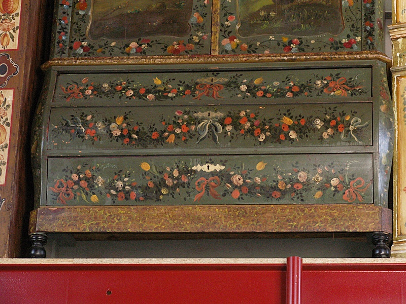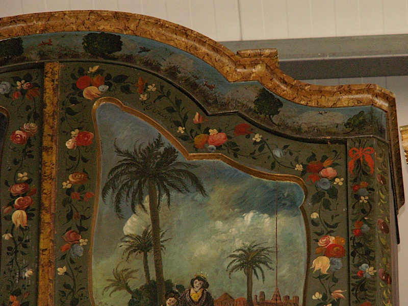 prawdopodobnie mebel z XVIII wieku. Malunki wyglądają na oryginalne z