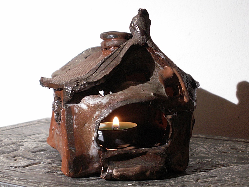 Współczesny ceramiczny ¶wiecznik z pocz±tku XXI wieku, kojarz±cy się z Bab± Jag±. Przeznaczony jest do tworzenia nastroju w jednym z pokoi na piętrze.