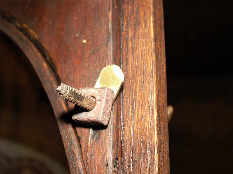 obudowy. Mechanizm zegara też był mocowany tylko jednym gwoździkiem.